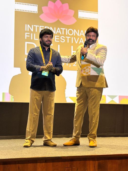 *నందమూరి బాలకృష్ణ మాట్లాడుతూ* .. ‘ప్రప్రథమంగా మా అమ్మనాన్నలకు ప్రణామాలు. వారి ఆశీర్వాదం లేకపోతే నేను ఇక్కడి వరకు వచ్చేవాడిని కాదు. వారి ఆశీర్వాదం వల్లే నేను చిత్ర సీమలో యాభై ఏళ్లుగా రాణిస్తూనే ఉన్నాను. ఇతర ఏ భాషలోనూ, ఏ ఇండస్ట్రీలోనూ ఇలా యాభై ఏళ్ల పాటు హీరోగా రాణిస్తున్న వ్యక్తి లేరని నేను గర్వంగా చెప్పగలను. మహిళల గురించి, మహిళల సాధికారత గురించి మా నాన్న గారు ఎప్పుడూ ఆలోచిస్తూ ఉండేవారు. తండ్రి ఆస్తిలో మహిళలకు వాటాని కల్పించే చట్టాన్ని ఆయన మొదటగా తీసుకు వచ్చారు. తిరుపతిలో పద్మావతి యూనివర్సిటినీ స్థాపించారు. మా నాన్న గారు సినిమాల్లో ఉన్నా, రాజకీయాల్లో ఉన్నా మహిళా సాధికారత గురించి పాటు పడ్డారు. ఆయన వారసత్వాన్ని, ఆయన ఆశయాల్ని మేం కొనసాగిస్తాం. ఆయన ఎప్పుడూ మా గుండెల్లో సజీవంగా ఉంటారు. అంతర్జాతీయ ఢిల్లీ చలనచిత్రోత్సవం (ఐఎఫ్ఎఫ్డి)లో పాల్గొనడం, పురస్కారాన్ని స్వీకరించడం ఆనందంగా ఉంది. ఈ కార్యక్రమంలో మా ‘భగవంత్ కేసరి’ సినిమాని ప్రదర్శించడం గర్వంగా ఉంది. మాకు ఈ అవకాశాన్ని ఇచ్చిన ప్రతీ ఒక్కరికీ ధన్యవాదాలు’ అని అన్నారు.